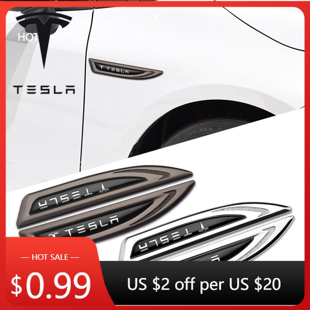 Car Sticker 2025 Hot 2Pcs Car Metal Badge Car Wing Right & Left Side Fender Stickers for Tesla Model 3 Y S X Roadster Juguete Sp