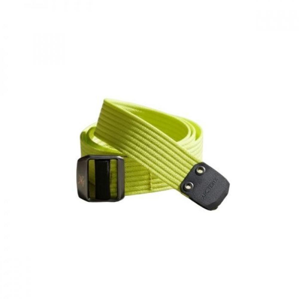 This product is a heavy-duty webbing belt with a classic design, featuring contrasting stitch details and a metal buckle embossed with the ARC'TERYX logo. The belt is constructed to be strong and stable, making it suitable for both everyday use and outdoor activities.