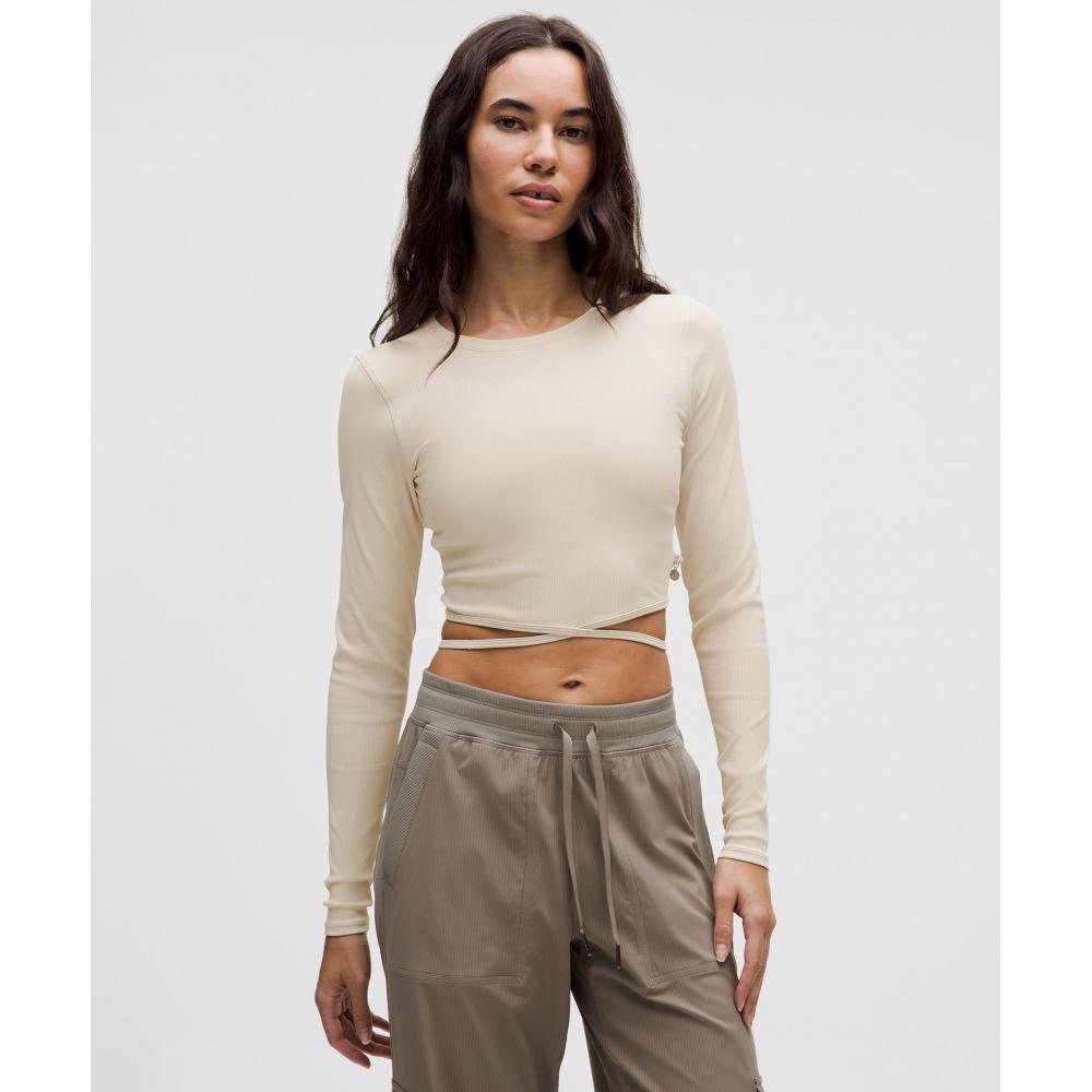Lululemon Logo Charm Ribbed Waist Tie Long Sleeve Shirt Beech White