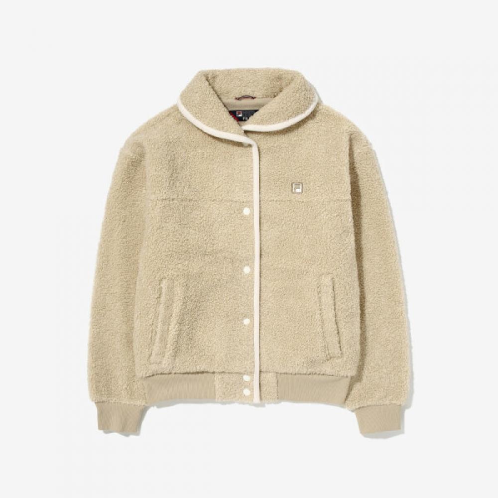 The Fila Tennis Shawl Collar Fleece FS2PLG4361F_LBE is a short-length women's sports jacket made of soft fleece material, providing warmth and comfort. With its long sleeves and shawl collar design, it emphasizes mobility and pairs well with the light beige color for versatile styling. This product is suitable for light sports activities and everyday wear throughout the 24 seasons.