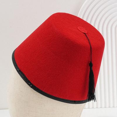 Universal Round Felt Fez Cap Moroccan Hat Red Color Tarboosh Fez Hat Cosplay Ottoman Turkish Tassels Cap Role Play Headwear