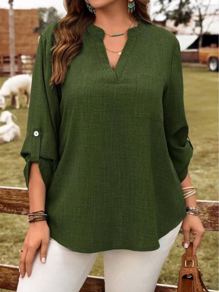 This elegant women's top is designed for the modern plus-size wardrobe, ideal for both spring and autumn seasons in European and American fashion. Crafted from high-quality polyester, it features a solid pattern that offers a versatile and timeless look. The V-neck design adds a touch of sophistication, while the long sleeves provide warmth and comfort. Whether you're dressing up for a night out or keeping it casual during the day, this button-down top is a stylish and practical choice.