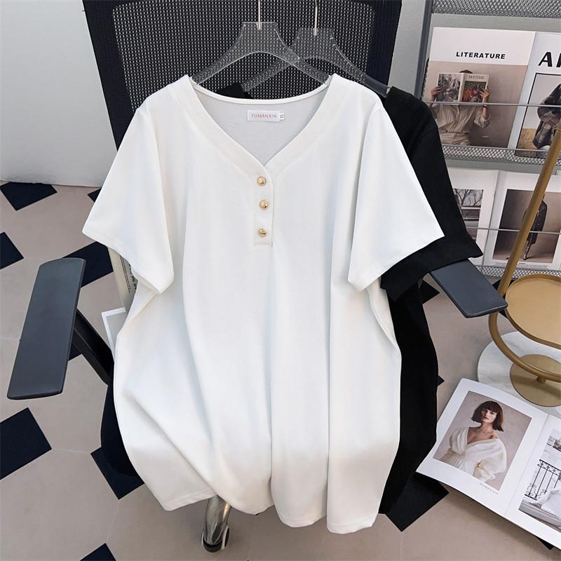 Plus Size V-Neck Mid-Length Short-Sleeve T-Shirt for Women
