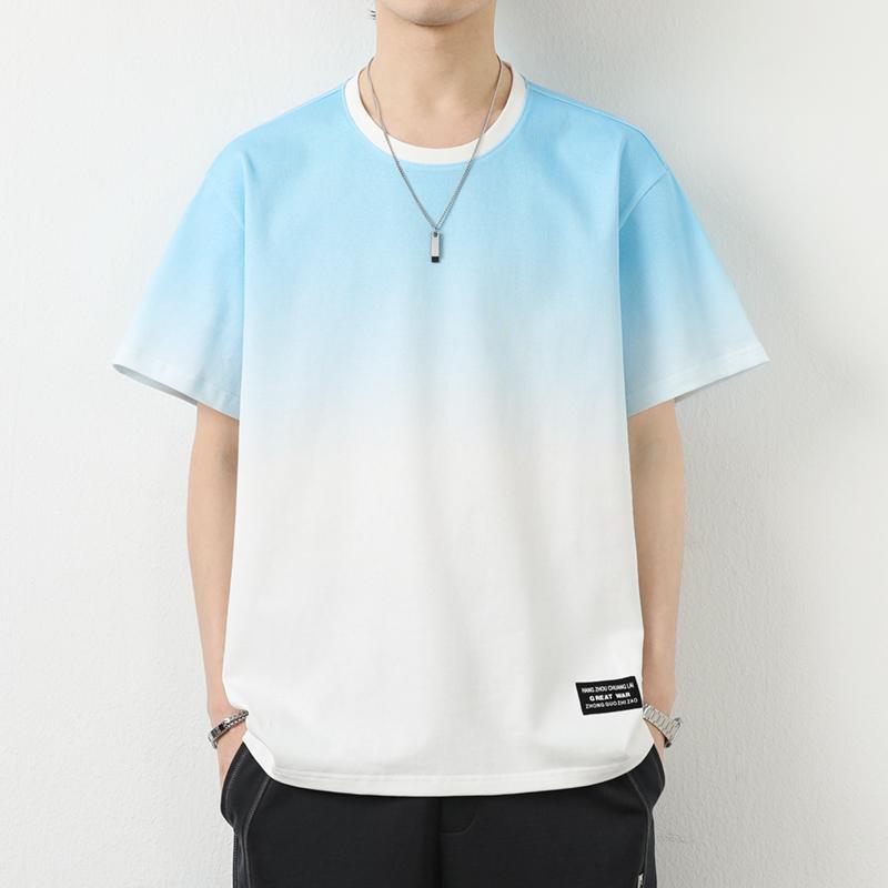 Men's Gradient Crew Neck T-Shirt - Casual Short Sleeve Top