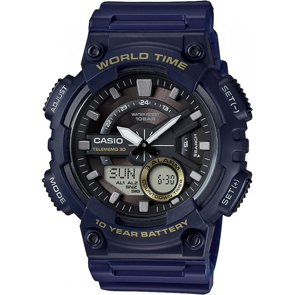 The CASIO Collection AEQ-110W-2AJH Men's Black Navy Watch is an outstanding product that harmonizes analog and digital elements. With an intuitive analog display and a digital screen packed with features, this watch enhances practicality. It includes water resistance suitable for daily use, as well as a stopwatch function for added utility in various situations. The product package includes the main body, blister pack, and user manual.