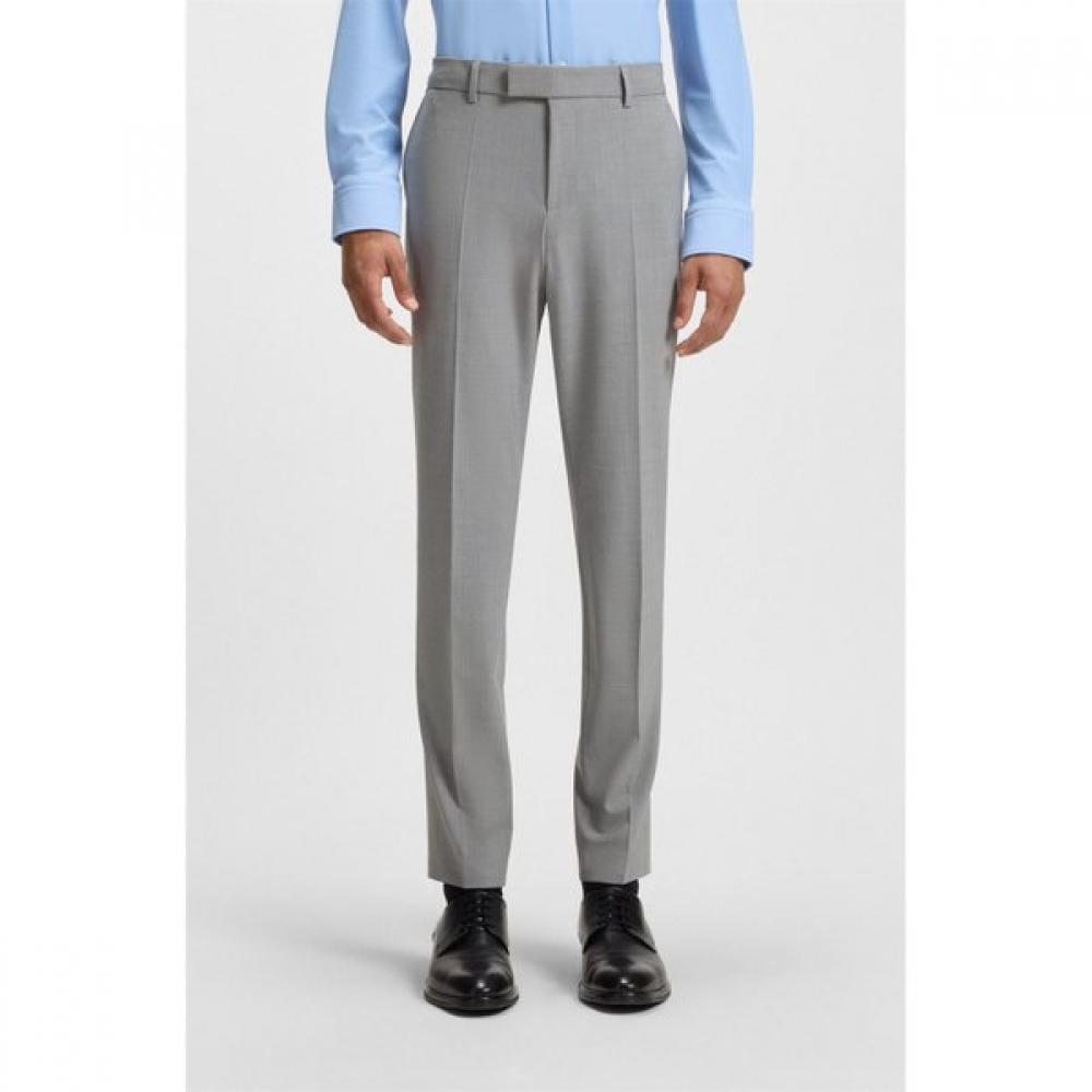 The BOSS Slim Fit Micro Pattern Stretch Pants are designed for a perfect style. These pants provide wrinkle-resistance features and are made from virgin wool and polyester stretch fabric, allowing for machine washing. They have a refined slim fit, making them easy to match with various styles.