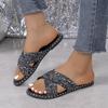 Cross-border European and American Style Silver Cross One-word Sequins Summer New Fashion Women's Large-size Flat Slippers