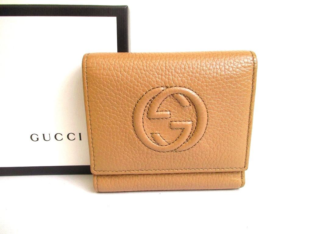 Authentic GUCCI Soho Interlocking G Beige Leather Trifold Wallet Purse #b102 Open Box