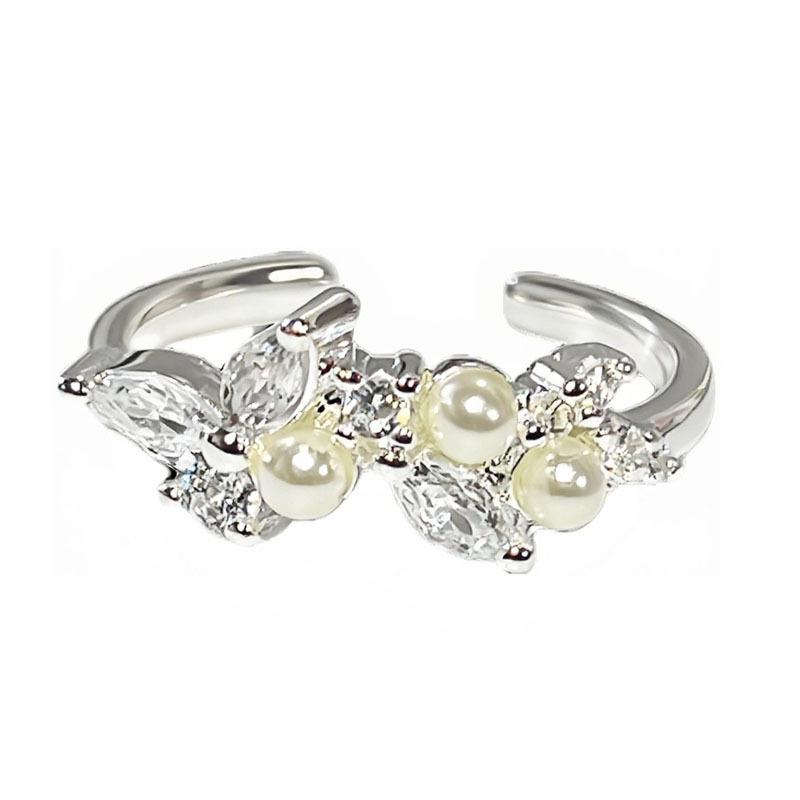 2026 French Gentle Style Internet Celebrity Pearl Bow Full Diamond Light Luxury Ring for Women's Unique Niche High-end Ring