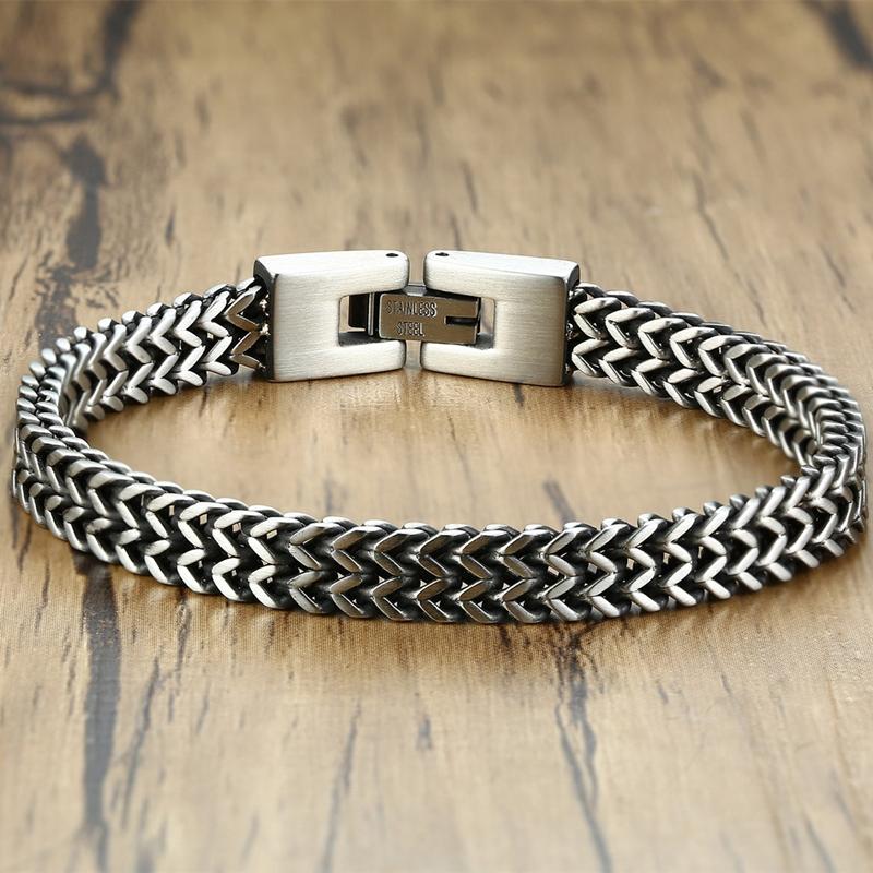 Locomotive Men Double Link Chain Bracelet Polish Color Stainless Steel Punk Biker Pulseira Masculina Jewelry To Boyfriend