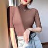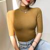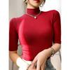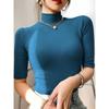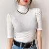 Threaded Short-sleeved T-shirt for Women Summer New Half-sleeved Turtleneck Bottoming Shirt with Inner Top