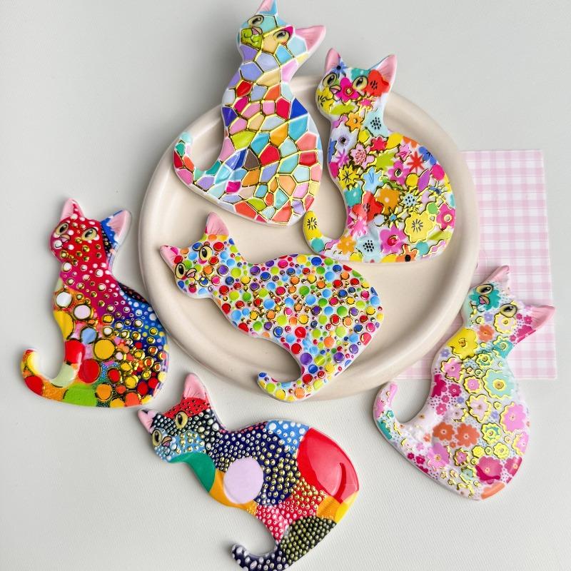 1PC Colorful Cute Cat Bronzing Relief Refrigerator Sticker Creative Cute Cat Home Decoration Refrigerator Sticker