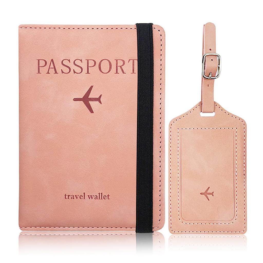 Orirya Passport PU Slim Bifold Travel Wallet with Luggage for International Travel and Business Lightweight and Includes Elastic Name Pink Case,