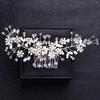 Handmade Silver Crystal Flower Hair Comb Pearl Rhinestone Flower Hair Combs for Women Bride Hair Jewelry Wedding Hair Accessorie