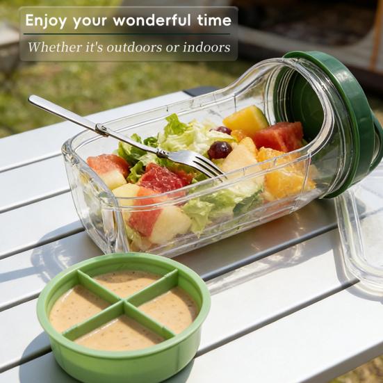 Side-Opening Salad Jar Plastic Leakproof Salad Container with Fork Portable Food Storage Box for Meal Prep Travel Outdoor Picnic
