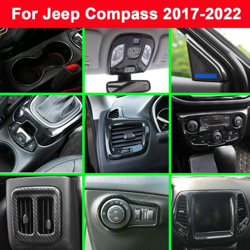 For Jeep Compass 2017 2018- ABS Plastic Car Door Sound Speaker Audio Ring Cover Carbon Fiber Water Cup Holder Frame Trim