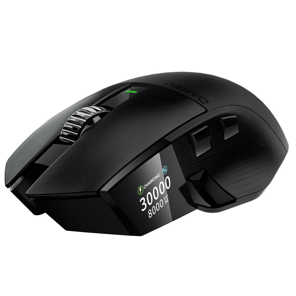 DAREU A980PROMAX Gaming Mouse with Wired 8K/Wireless 4K TFT Screen, 30000 DPI, Magnesium Alloy Main Buttons, 2.4G Wireless/Bluetooth/USB Connections, 4000Hz Receiver, Rechargeable, Ergonomic, Right-Handed, Black (1-Year Manufacturer's Warranty)