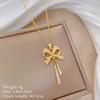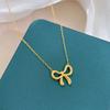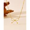 L316 Stainless Steel Beads Chain Hollow Bowknot Pendant Necklace for Women Niche Simple Jewery Accessory