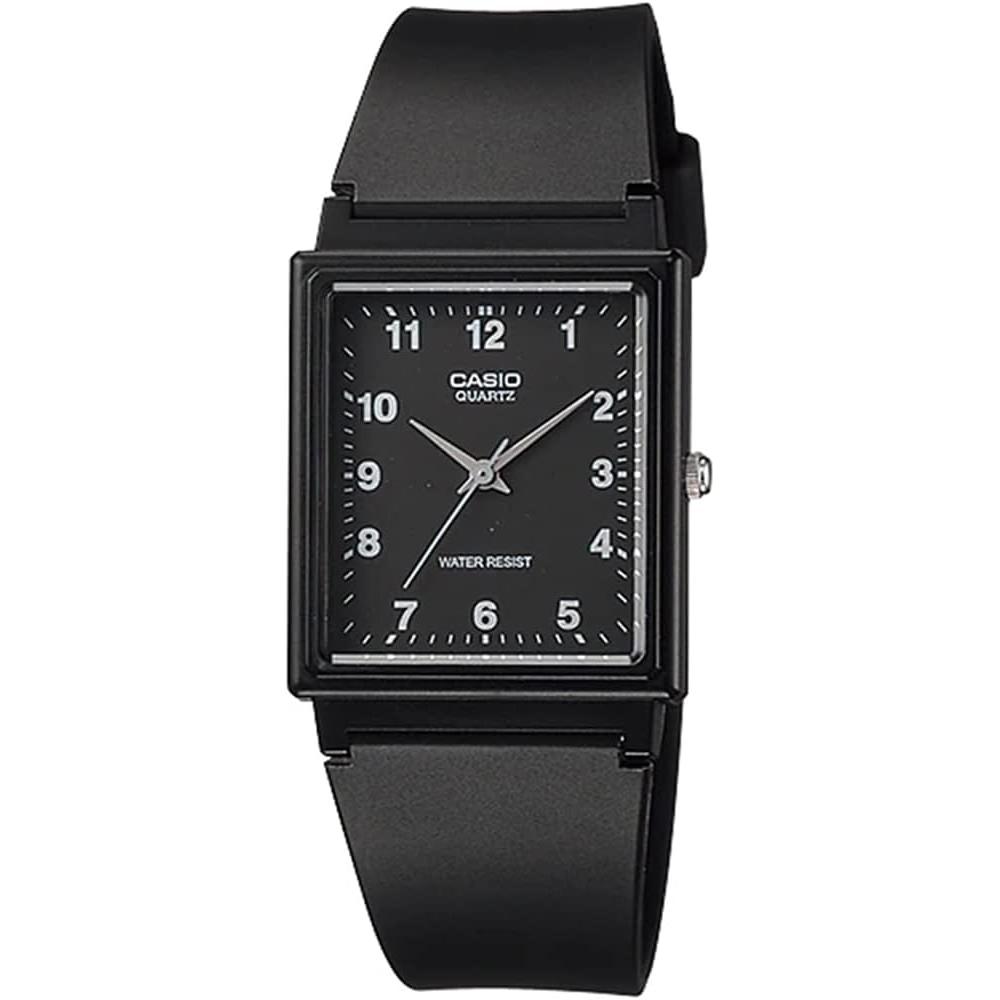The CASIO Analog Watch Chipka Cheap MQ-27-1B model features a sleek rectangular face and a urethane belt, making it suitable for both men and women. Designed in a Black Arabic color, it includes a water-resistant feature, perfect for everyday use. This watch ensures an accuracy of approximately ±20 seconds per month and boasts a battery lifespan of about three years.