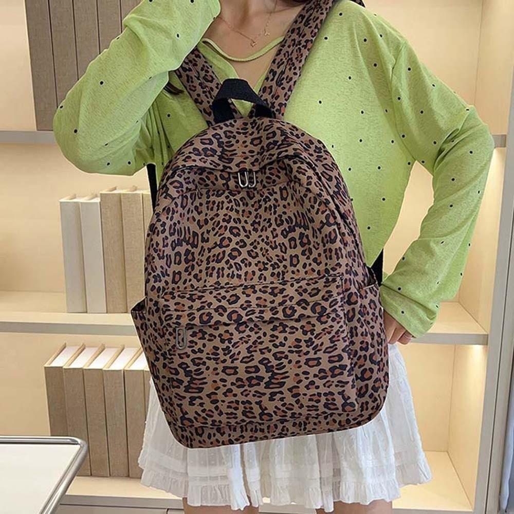 Nylon Students School Bag Retro Large Capacity Backpack Portable Leopard Print Backpack for Gift