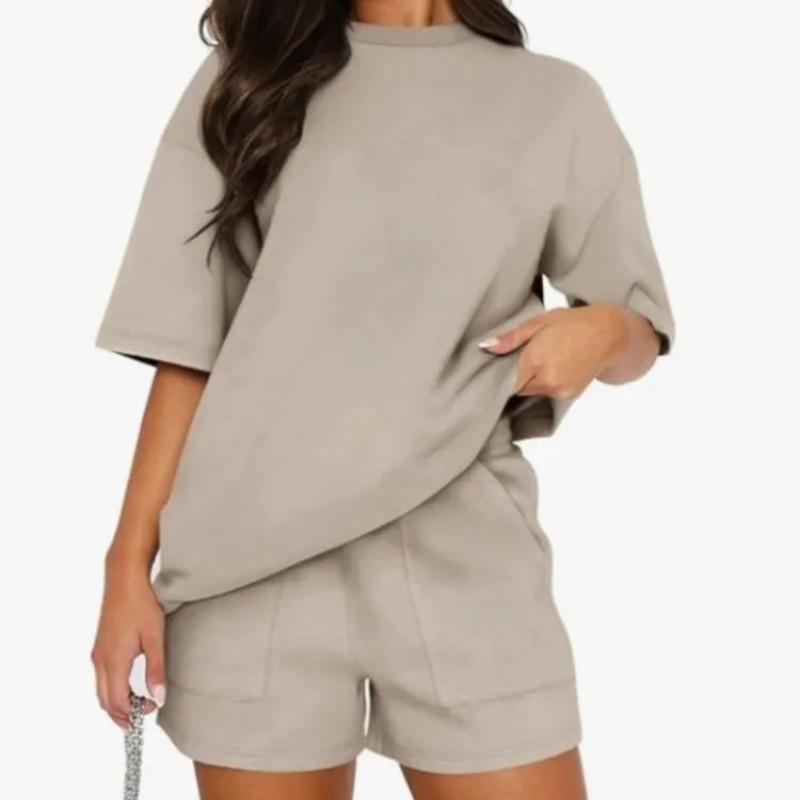 Fashion Summer Solid Casual Suit Elegant Casual O Neck Short Sleeve Short Pants Set Of 2 Pieces Holiday Womens Clothing