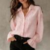 Women's Solid Color Lapel Single Breasted Lace Splicing Long Sleeve Solid Color Versatile Shirt