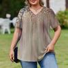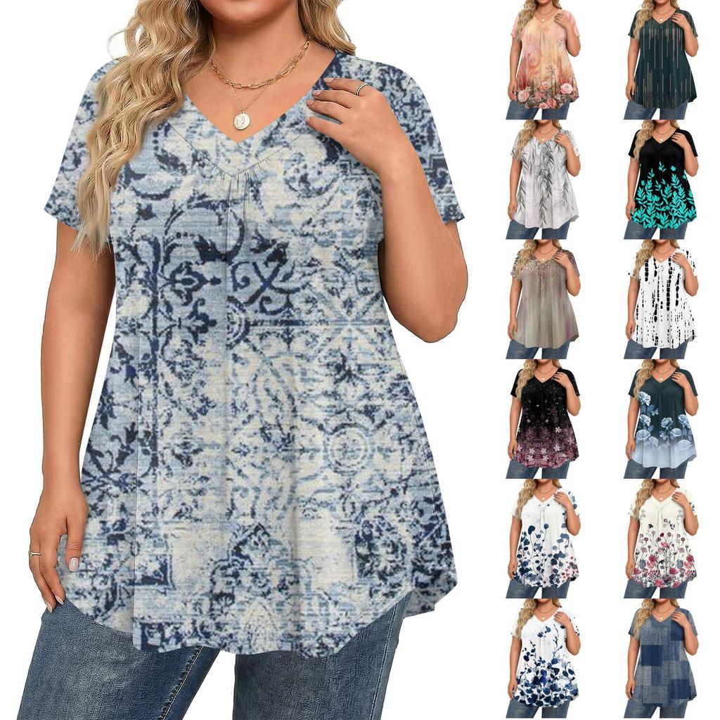 Women's Plus Size Fashionable Casual Loose-Fit Short Sleeve Elegant V Neck Blouse For Work