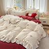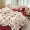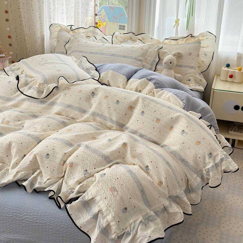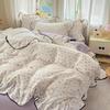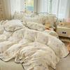Bubble Cotton Fresh Floral Lace Bedding Set - 4-Piece Soft Duvet Cover & Sheet