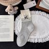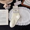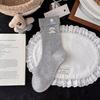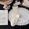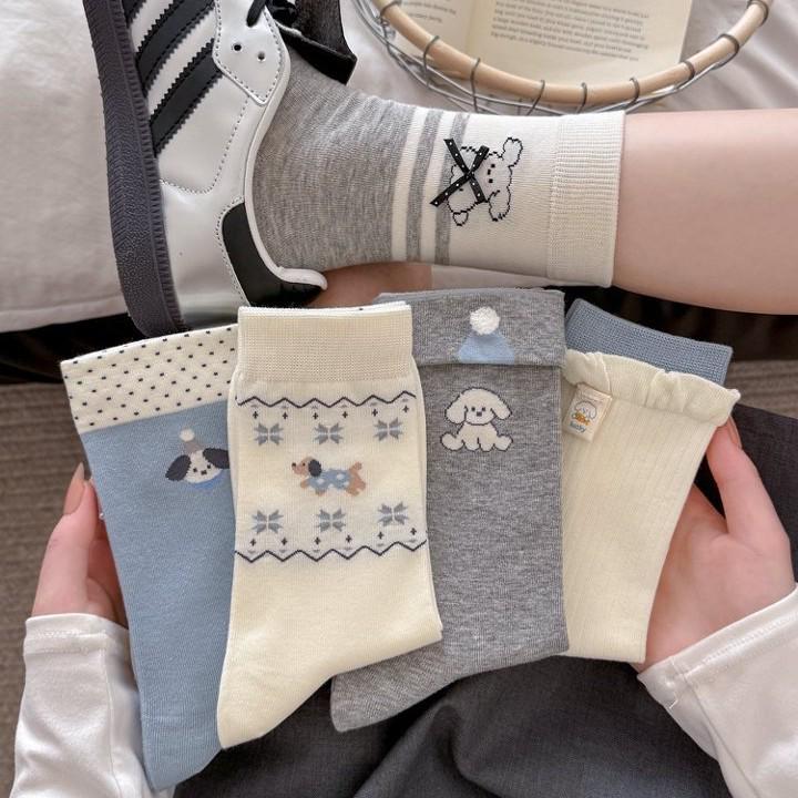 Korean Blue-Grey Mid-Calf Combed Cotton Women's Socks - Trendy Japanese Cute Puppy Design