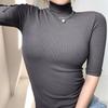 Elastic Slim Cotton Turtleneck T Shirts For Women Casual Short Sleeve Tee