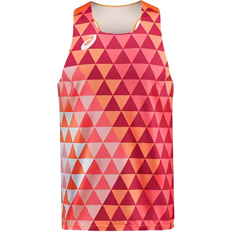 Asics Marathon Full Print Quick-Dry Running Vest Men Tops Orange Red 2011C721-800