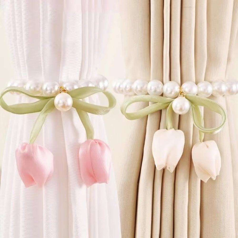 Pearl Chain Tulip Curtain Straps Tulip-Shaped Window Ties Fashion Curtain Tiebacks Wedding Room
