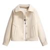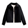 Featuring a lapel collar, long sleeves, short style, and loose fit, this jacket is made of soft woolen fabric that is comfortable to the touch and ideal for spring and autumn.