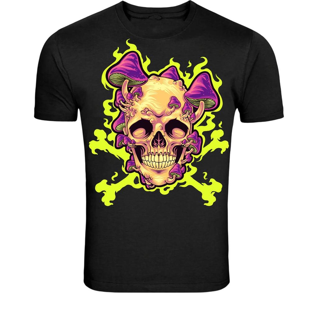 Psychedelic Skull Mushroom T-Shirt - Trippy Skull Shroom Graphic