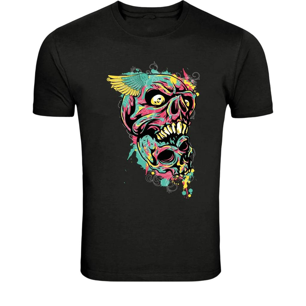 Colorful Skull Art T-Shirt - Abstract Neon Skeleton Graphic Tee