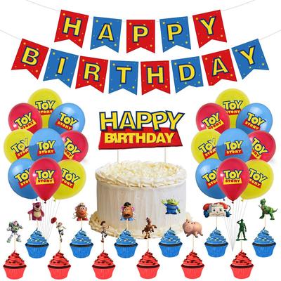 Toy Story Birthday Decoration Party Set Woody Buzz Lightyear 5 Disney Children Cute Boys Girls Character Movie Anime Doll Red Yellow Blue Happy