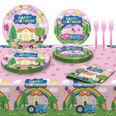 Peppa Pig Birthday Party Supplies: Peppa Pig Disposable Dinnerware Set - Paper Plates, Napkins, Plastic Forks, Tablecloth, Birthday Decorations, Hangi