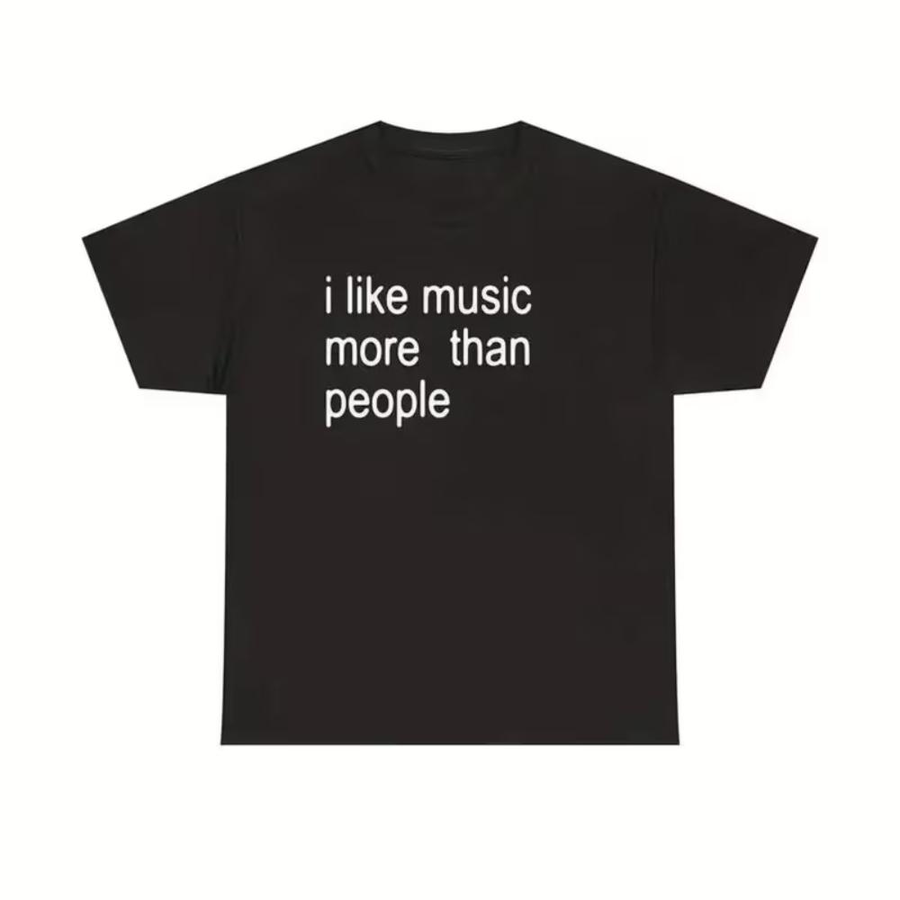 2026 New Mens Vintage I Like Music More Than People Letter T Shirt Unisex Women Tee Casual Streetwear Harajuku Summer Cotton