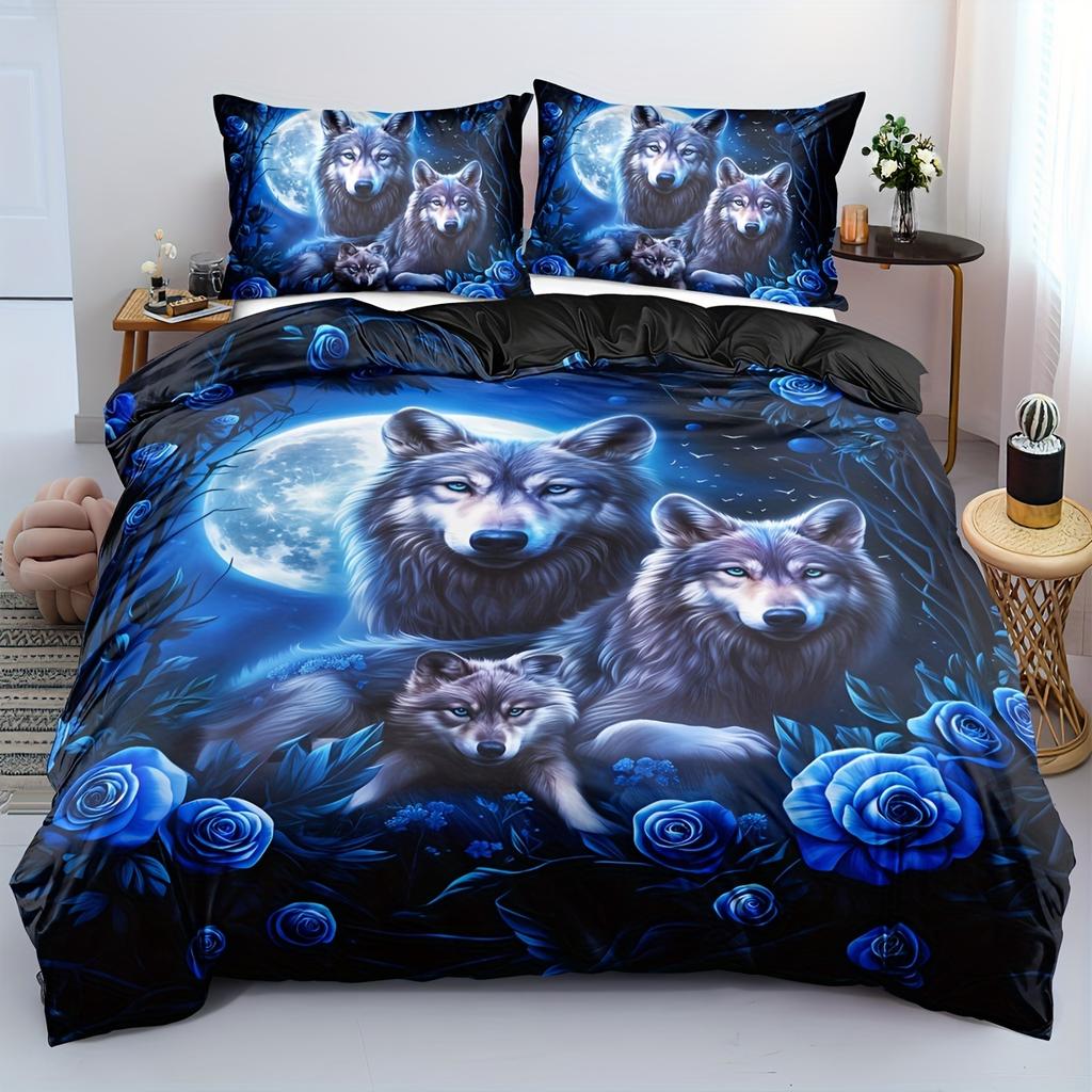 Comforter 2/3Pcs Soft Comfortable Wolf Bedding Set Set Blue Flower Bedding Set Wolves Animal Print Floral