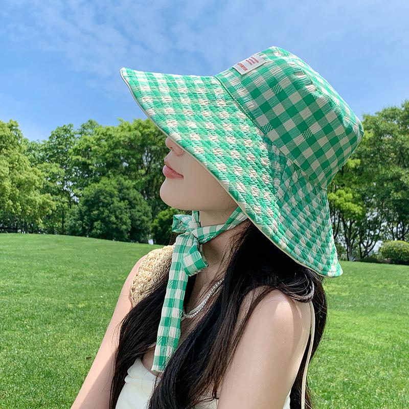 Korean-style Houndstooth Fisherman Hat for Women, Suitable for Spring and Summer, Reversible with a Large Brim That Makes the Face Look Smaller,