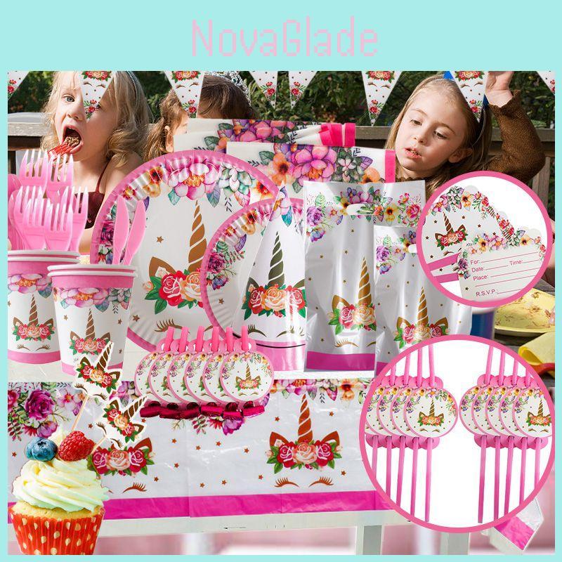 Wreath Unicorn Kids Birthday Party Supplies Colorful Tableware Plates Cup And Forks