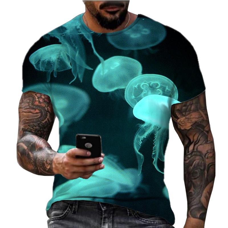 Summer Hot and Colorful Jellyfish Pattern 3D Printing American Casual Sports and Fitness Short Sleeved T-shirt