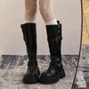 Black Retro Women's Long Boots Double Wear High Tube Knight Style Thick Bottom Spring Autumn Non-Knee High Heel Shoes