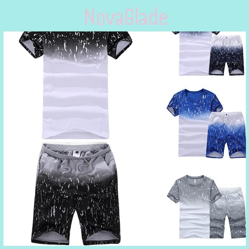 Crew Mens Neck Gradient Tshirtshorts Tracksuits Set Gym Jogging Running Pants