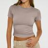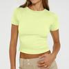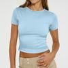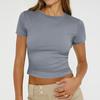Ladies Summer Fashion Casual Color Round Neck Short Sleeve Slim Ribbed Top