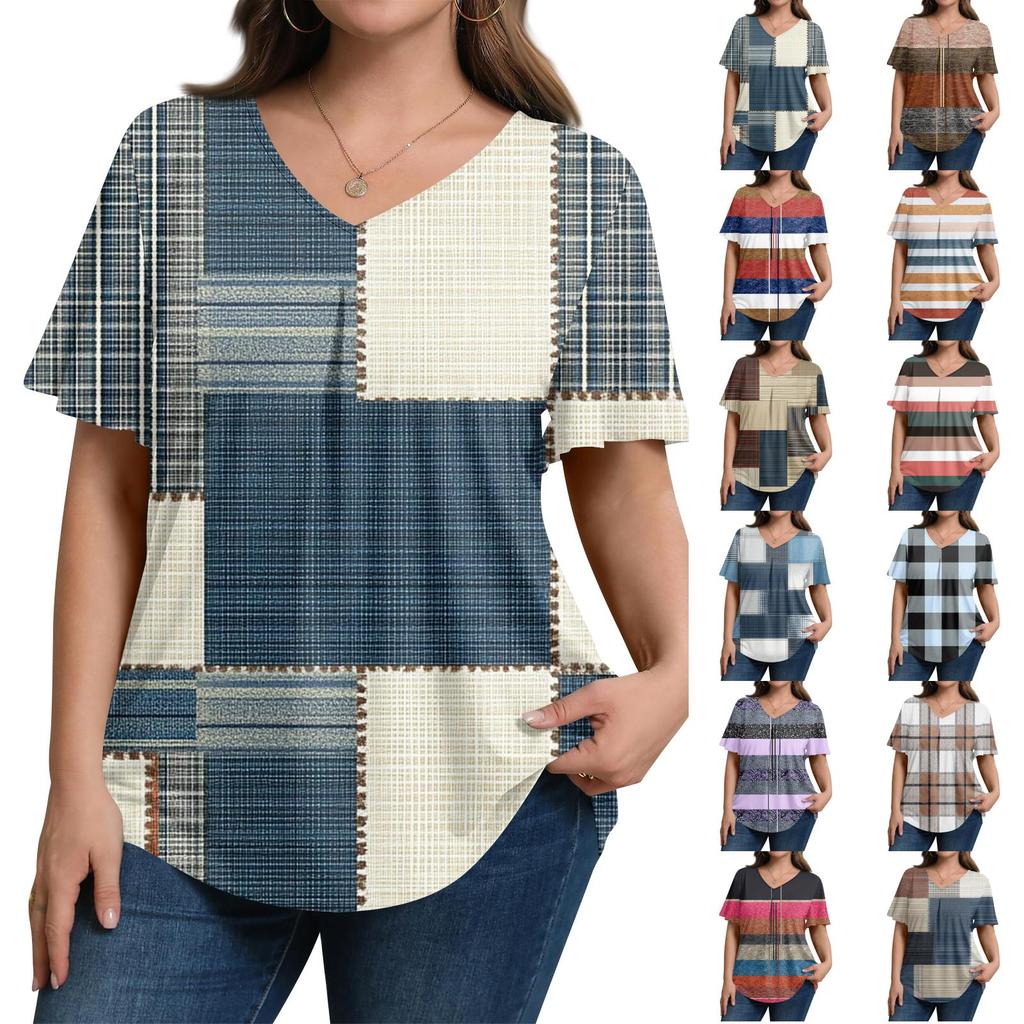 Women's Plus Size Fashionable Casual Loose-Fit Short Sleeve Elegant V Neck Blouse For Work
