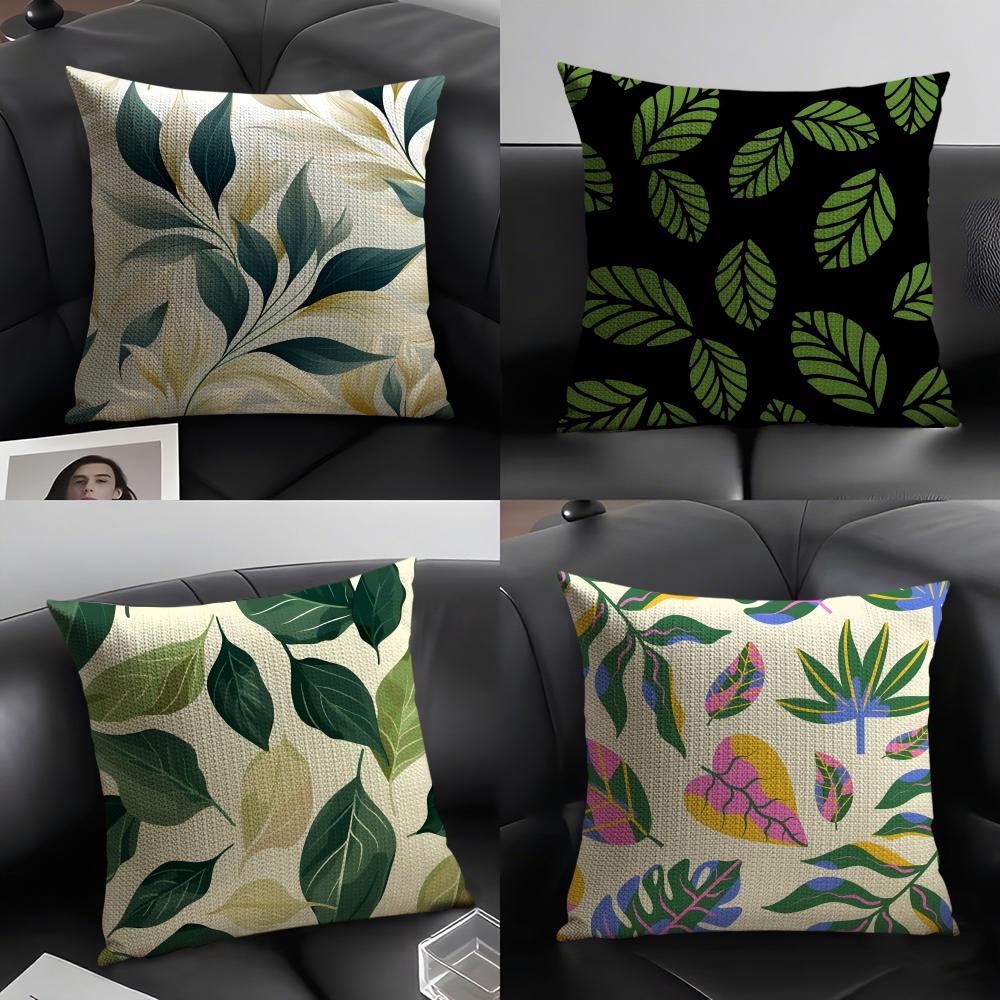 Leaves INS Cushion Cover Natural Linen Organic Fabric DoubleSided Printing Sofa Home Decor Gift Pillow Case