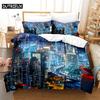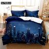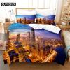 3D Digital Printing Fashion Design City Night Scene Beding Set, Quen Sized Dimensions Soft with Soft Fabric Duvet Cover Set