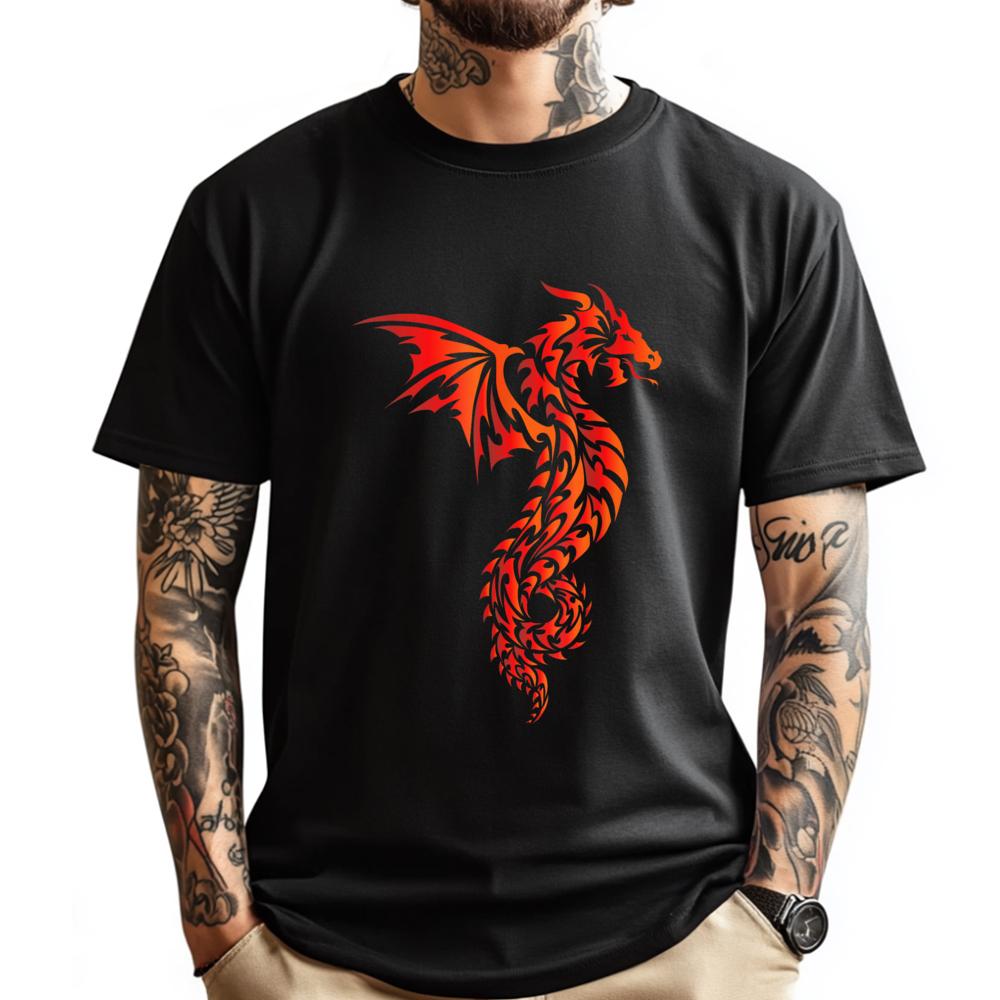 Dragon Tribal Mythical Legendary Creature Folklore Blue And White Graphic T Shirts Men's Clothing Funny