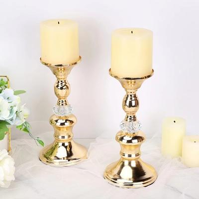 Gold Metal Tabletop Candle Holders Crystal Pillar Candle Stands Suitable for Wedding Anniversary